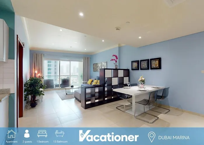 Marina Heights - Unique One Bedroom se sitúa en el vibrante y activo Dubai Marina, famoso por ofrecer una mezcla de entretenimiento y relax que atrae tanto a adultos como a niños. A solo 3 km de The Walk at JBR, este apartamento se convierte en el refugio ideal después de explorar las hermosas playas y las opciones de restauración al aire libre que la zona ofrece.